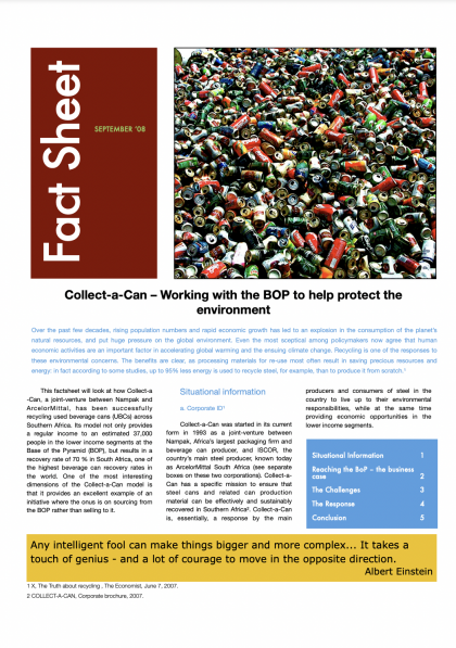 vamtam-theme-circle-post Category Fact Sheets, Our publications Promoting access to affordable healthcare in rural areas October 1, 2010 Read More vamtam-theme-circle-post Category Fact Sheets, Our publications Bus Rapid Transit : A public transport solution for the BoP ? March 1, 2010 Read More vamtam-theme-circle-post Category Fact Sheets, Our publications Waste management at the base of the pyramid October 8, 2009 Read More vamtam-theme-circle-post Category Fact Sheets, Our publications Providing finance to emerging farmers : First National Bank’s Supply Chain lending model May 1, 2009 Read More vamtam-theme-circle-post Category Fact Sheets, Our publications SAB Miller – Integrating smallholder farmers into the supply chain of an MNC March 8, 2009 Read More vamtam-theme-circle-post Category Fact Sheets, Our publications The Business Place – Helping to foster entrepreneurship at the BOP March 1, 2009 Read More vamtam-theme-circle-post Category Fact Sheets, Our publications Learn to Earn – Helping people at the BOP achieve their full potential January 8, 2009 Read More vamtam-theme-circle-post Category Fact Sheets, Our publications Is solar energy an option in Southern Africa ? January 1, 2009 Read More vamtam-theme-circle-post Category Fact Sheets, Our publications Collect-a-Can – Working with the BOP to help protect environment September 1, 2008 Read More Load more